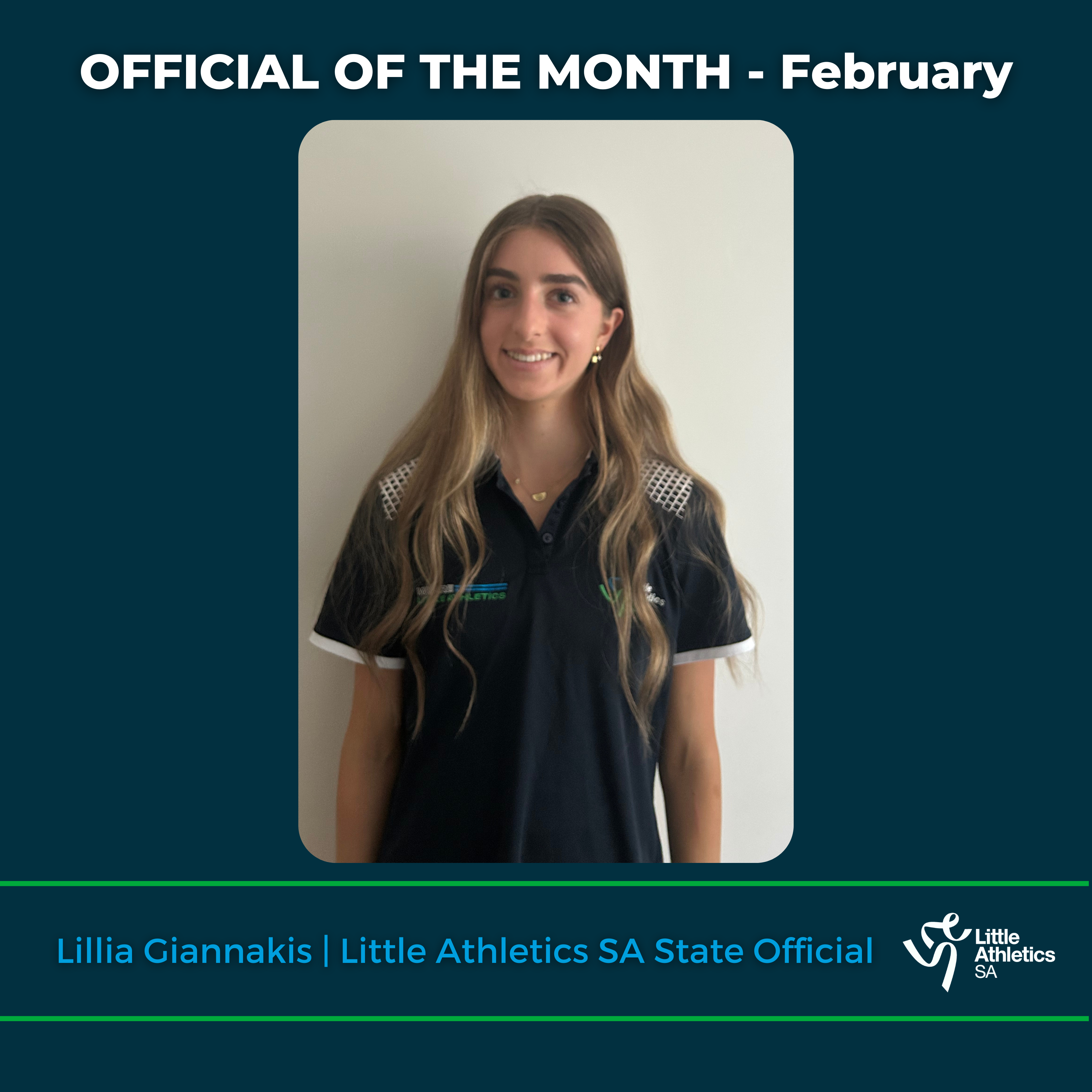 Every month Little Athletics SA recognises the Official of the Month for their dedication and commitment to the Little Athletics Community. Please see below the following Officials of the Month.