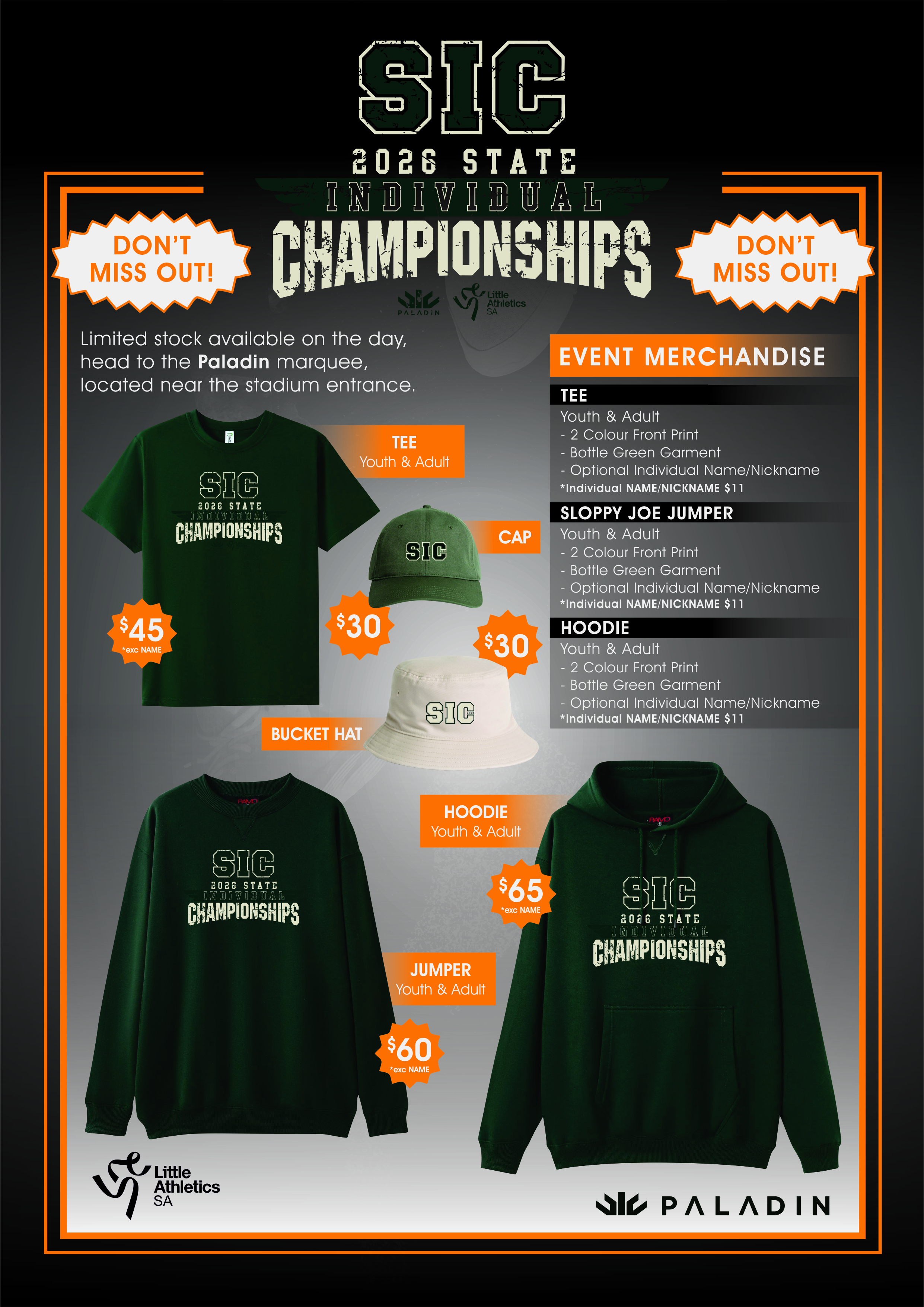 PALADIN EVENT MERCHANDISE – no pre-orders needed this year. Merchandise will be available to purchase at the event.